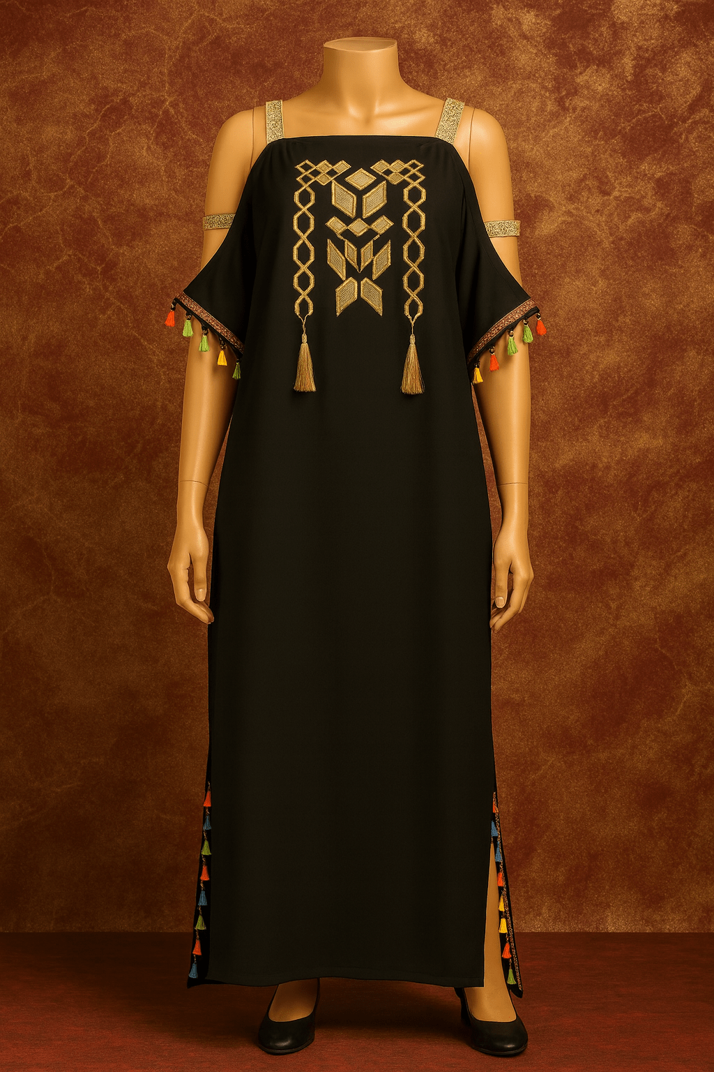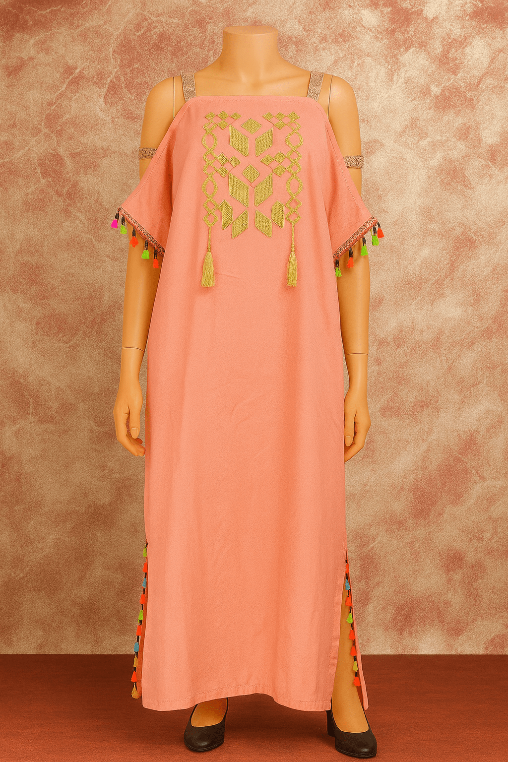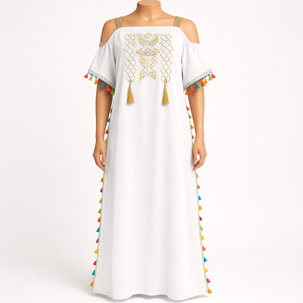 ✨ Gandoura à bretelles – Motif berbère & pompons ✨