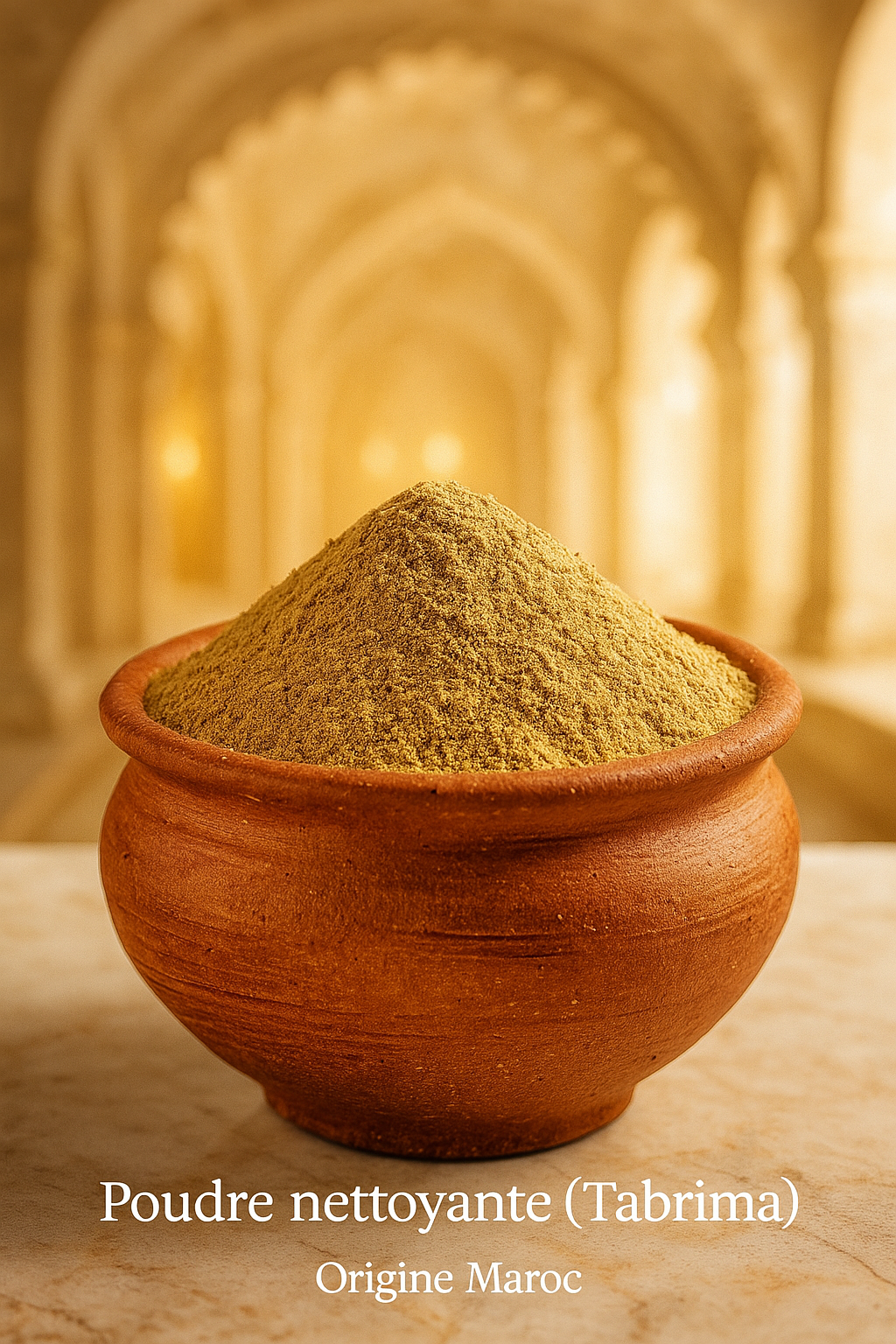 Découvrez la Tabrima, tout droit exportée du Maroc, un soin exfoliant luxueux conçu pour élever l'expérience du hammam.